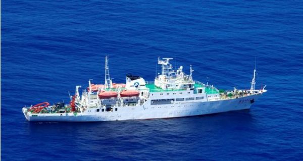 资料图:今年4月,一艘中国海洋调查船在东海进行调查作业。(日本《朝日新闻》网站)