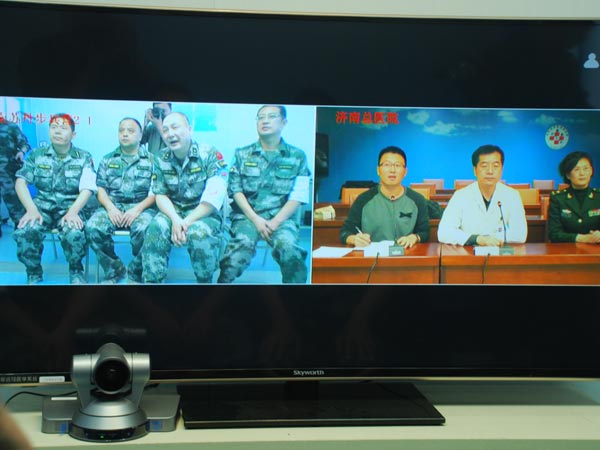新华网消息:当地时间12月17日上午11点30分(北京时间下午16点30分),中国第二批维和步兵营一级医院在朱巴营区首次和国内济南军区总医院实现了跨国专家面对面远程会诊。