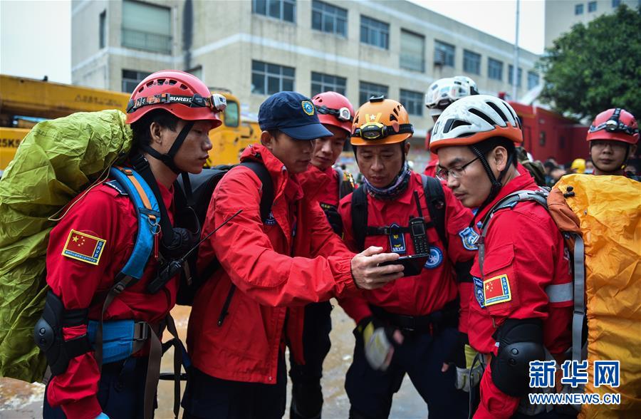 12月20日,深圳山地救援队的成员在事故现场商议救援方案。 新华社记者 毛思倩 摄