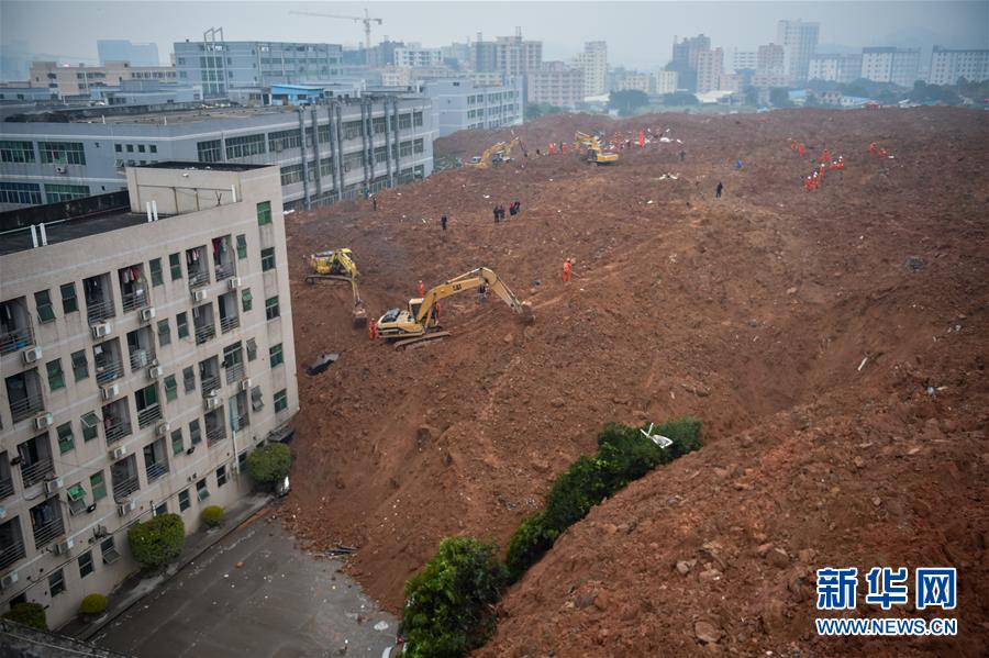 航拍深圳山体滑坡事故现场:楼房被冲垮
