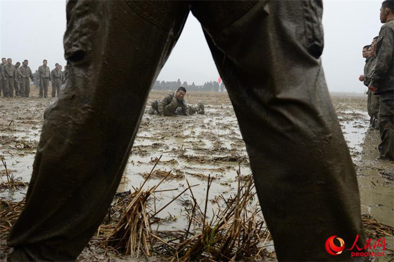 武警特战队员野外“魔鬼训练” :泥潭里肉搏