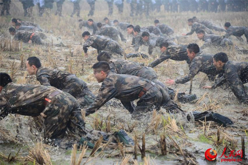 武警特战队员野外“魔鬼训练” :泥潭里肉搏