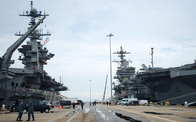 目前以诺福克海军站为母港的航母有:CVN-69艾森豪威尔号、CVN-72林肯号、CVN-75杜鲁门号、CVN-77布什号。