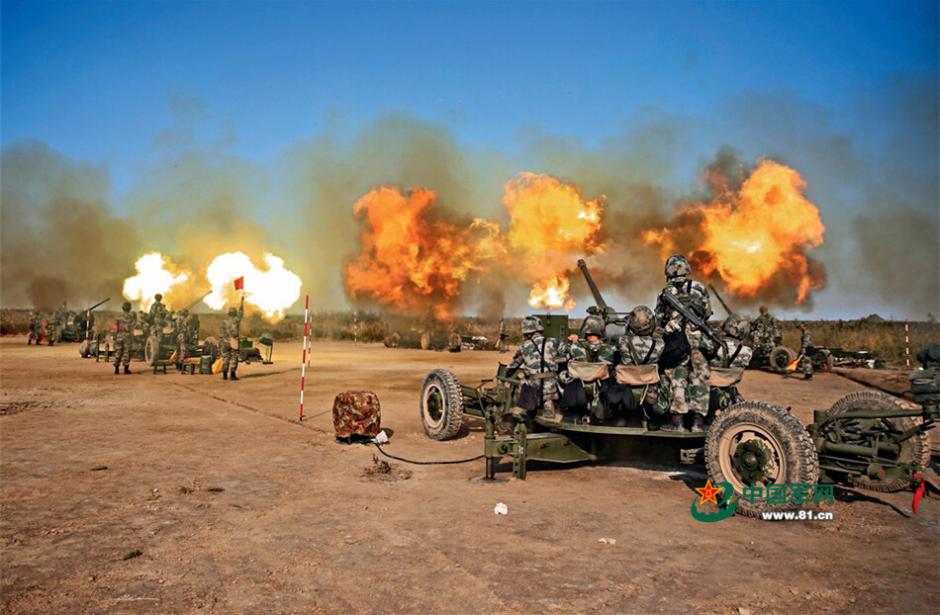 中国陆军红旗7B导弹与高炮海边实弹射击