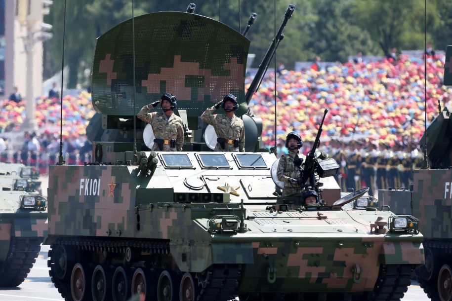 【2015阅兵】9月3日,中国人民抗日战争暨世界反法西斯战争胜利70周年纪念大会在北京隆重举行。这是高射炮兵方队接受检阅。新华社记者 曹灿 摄