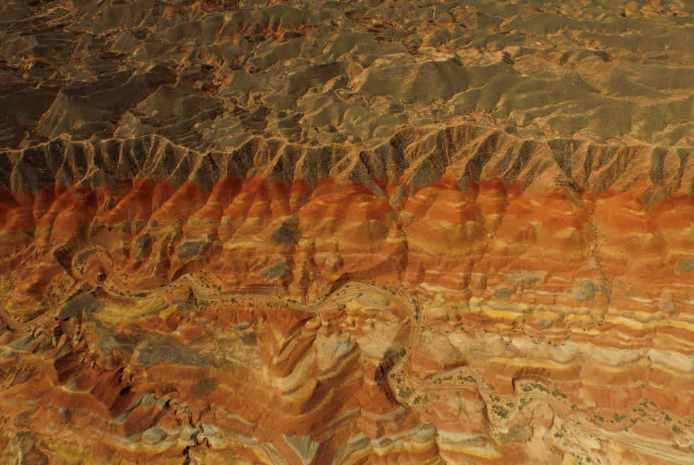 中国甘肃省张掖市丹霞国家地质公园内部蜿蜒的公路。(网页截图)
