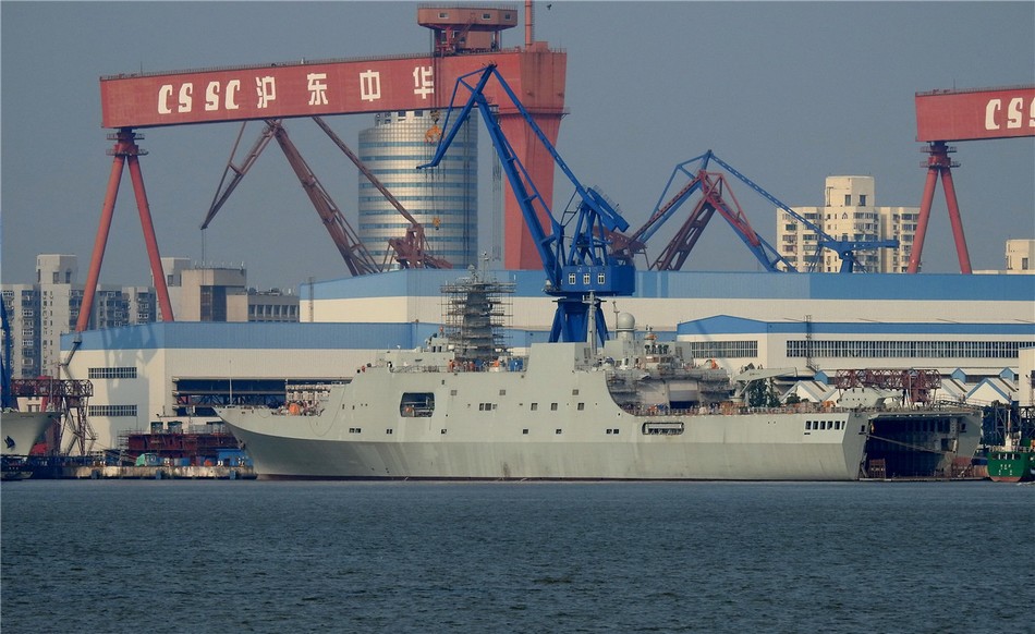 网友在国内某造船厂拍摄到了最新建造的071型船坞登陆舰的进展情况。目前,中国海军已经服役了3艘该型船坞登陆舰,均装备南海舰队,分别名为昆仑山舰、井冈山舰和长白山舰。(图片鸣谢:鼎盛军事 DD水兵)