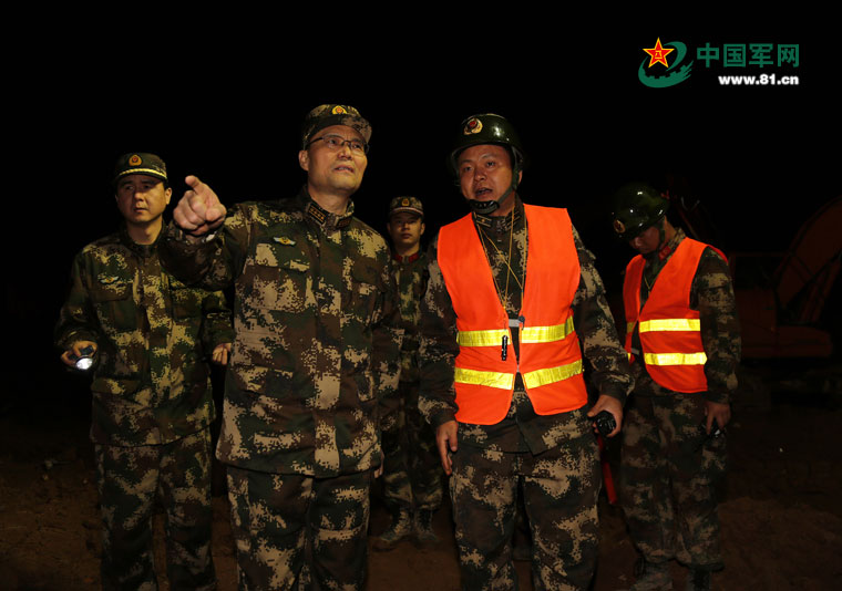 武警交通部队领导干部深夜在一线组织指挥救援战斗。 涂敦法 摄