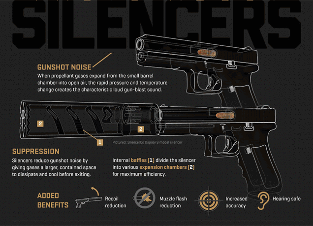 成功推出格洛克22手枪后,格洛克公司有专门为美国安全部队研发了格洛克20手枪,专门用于发射美国联邦调查局(FBI)的10毫米子弹,枪口初速380米/秒,弹容量15发。上图是格洛克20手枪装配消音器后的剖面图。