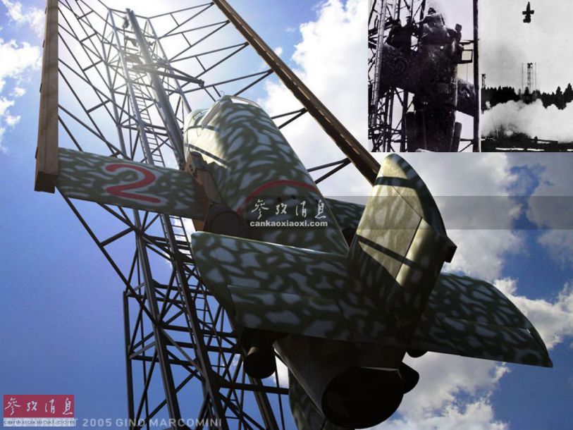 在1945年2月28日的首次载人飞行试验中,Ba-349原型机在发射后不到10秒就坠毁了,年仅23岁的试飞员当场死亡。之后该型机又进行了3次载人发射,均取得成功。截至纳粹德国战败前,BA-349共制造了36架,均未投入实战。图为BA-349垂直发射架CG还原图。