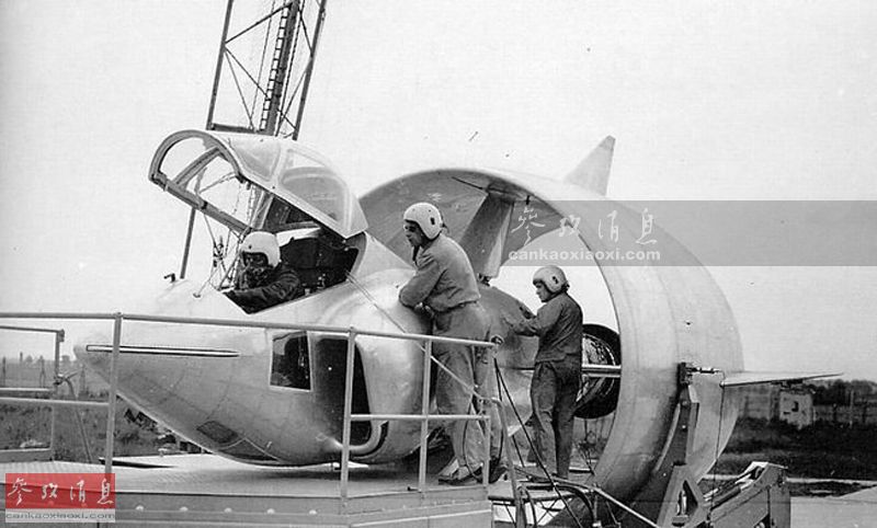 地勤人员在C450试飞前进行调试工作,该机独特的环形机翼布局十分醒目。