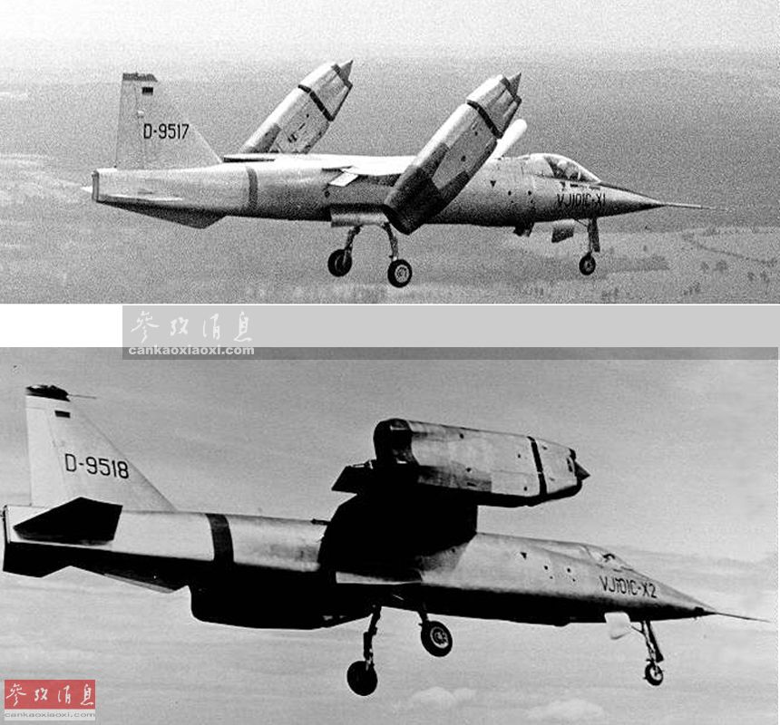 1964年7月29日, VJ-101C在一次试飞中的最大平飞速度达到了1.04马赫,使其成为了历史上第一种实现超音速飞行的垂直起降飞机。图为德国VJ-101试验机两种不同飞行状态(垂直起降和水平飞行)的资料图。