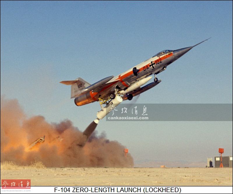 图为西德F-104战机使用“零长弹射”起飞。
