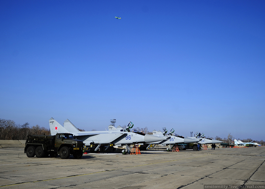 近日,驻俄罗斯滨海边疆区第303近卫空军师下属第22航空战斗团接装了3架最新改进型米格-31BMS截击机,编号分别为94、95、96;该部队同时还有一个配苏27SM战机和Su-30M2战机的混编中队。未来还将装备最新的苏-35战机,用来替换苏-27SM战机。