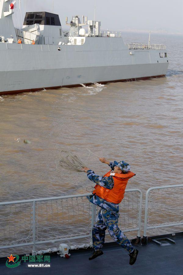 12月26日,编队海上靠泊训练,帆缆兵正在撇缆。周道先摄