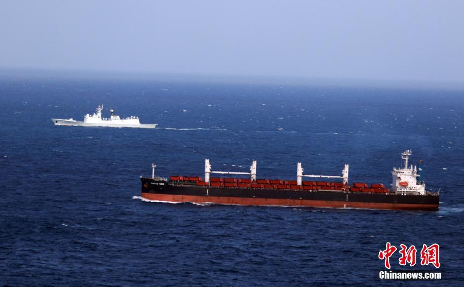 海军第22批护航编队自12月6日从起航以来,先后穿越大隅海峡、萨兰加尼海峡、望加锡海峡、巽他海峡等海峡海道,经过23昼夜8000余海里的连续航行,于29日凌晨顺利抵达亚丁湾东部集结点,与第21批护航编队会合。 中新社记者 曾行贱 摄