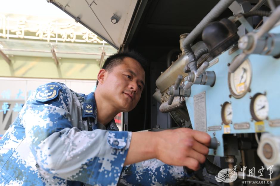 弹药保障官兵仔细检查弹药测试的气电设备。李鹏 摄
