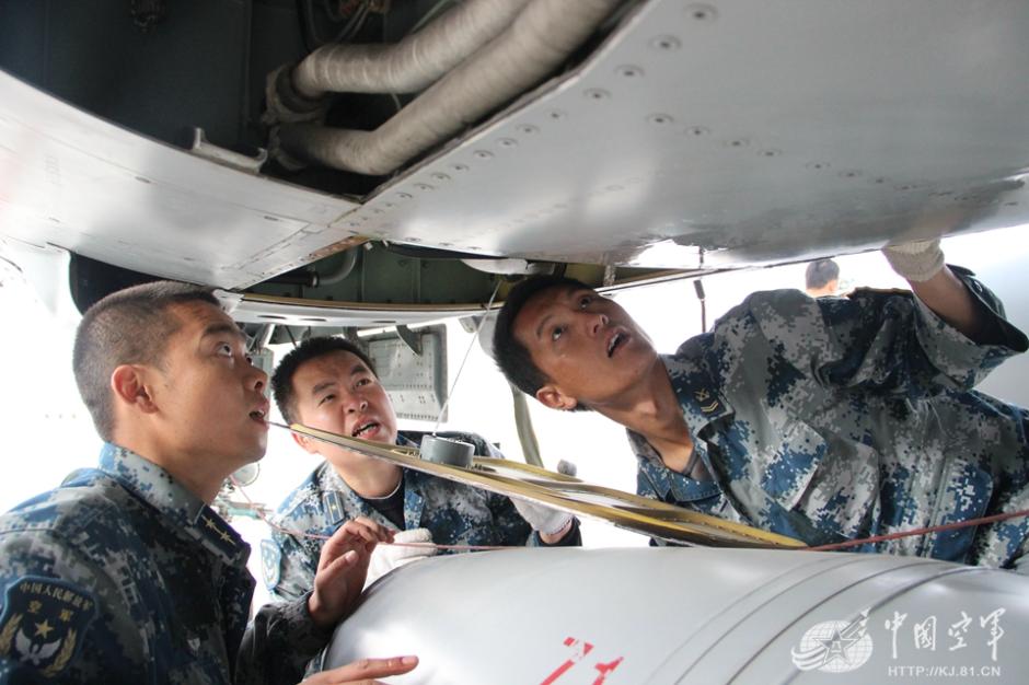 机务官兵通力协作维护好战机,让战机始终处于最好状态。王君朝 摄