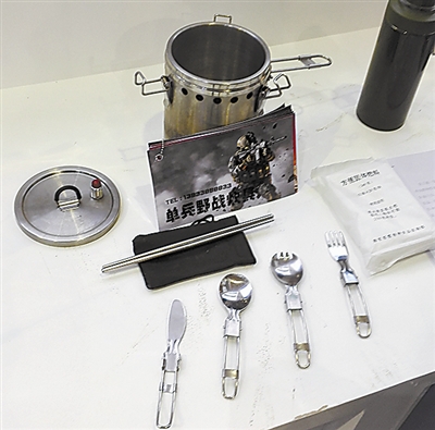 此次展出的单兵野战炊具,具备隐蔽性强、节约能源、抗风雨能力强等优点。这款炊具将微压装置、锅体、燃烧器和炉座结合在一起,重量仅0.8公斤,非常易于携带。不仅如此,所需的食材、燃料与折叠餐具均可储存于内锅中,仅需一块固体燃料就能在6分钟左右烧开1.2升水,由于采取全封闭环形加热,故无明火出现,使得野战环境下不会暴露目标。