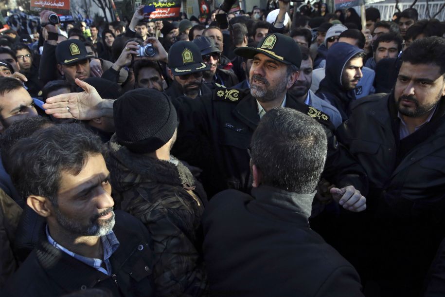 1月3日,在伊朗首都德黑兰,警方官员在沙特驻德黑兰大使馆外劝阻抗议知名什叶派教士尼姆尔被处决的人群。沙特阿拉伯外交大臣朱拜尔3日宣布,沙特断绝同伊朗外交关系,并责令伊朗外交人员48小时内离境。 沙特内政部2日宣布处决了47名犯有恐怖主义罪行的囚犯。据报道,被处决者中包括知名什叶派教士尼姆尔。当天夜间,大批伊朗抗议者包围沙特驻德黑兰大使馆。沙特使馆部分建筑被伊朗抗议者焚毁。新华社/美联