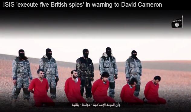 据英国《每日邮报》1月3日消息,极端组织伊斯兰国(IS)日前发布视频向卡梅伦政府发出警告和威胁,称将用更多“暴行”报复英国的空袭行动。视频中显示,IS对5名英国间谍嫌疑人行刑。IS同时在视频中称。英国政府已经抛弃了这些被俘虏的英国间谍。