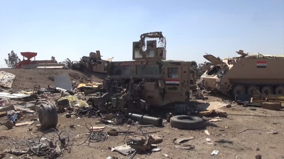 近日,一段疑似伊拉克政府军与极端武装分子激战过后的现场画面在网络上曝光。从图片中可以看到多辆刷涂有伊拉克政府军标志的装甲车辆被摧毁,其中甚至还有一辆美制的M1A1坦克。