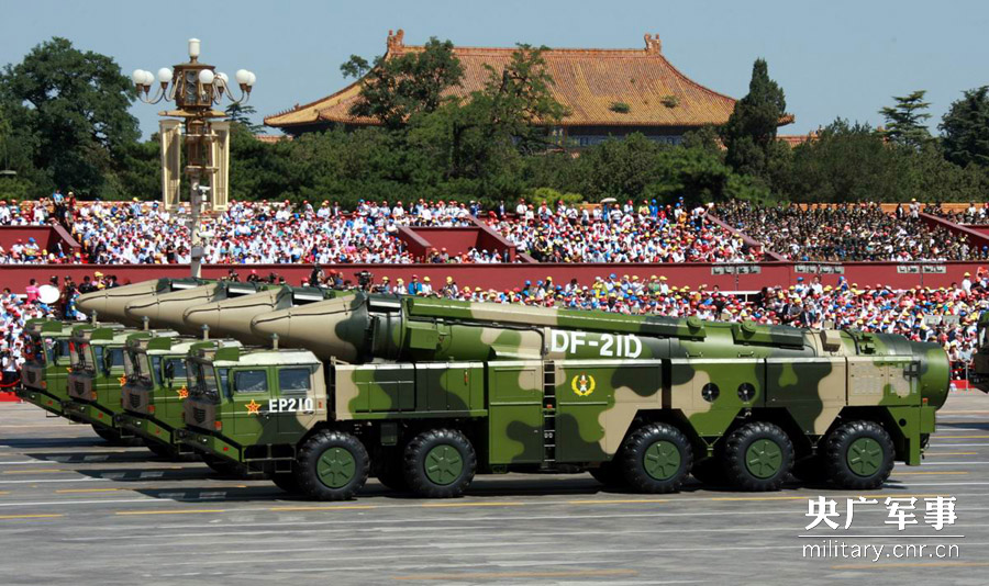 2015年9月3日抗战胜利70周年大阅兵现场,东风-21D导弹接受检阅。陶宏祥 摄