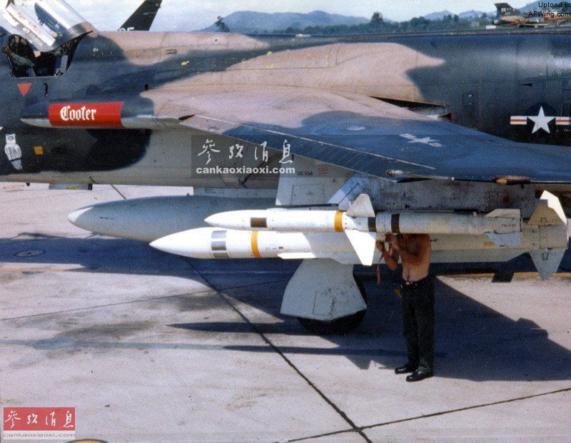 本图可看出AGM-45(小)和AGM-78“标准”(大)两种反辐射导弹的尺寸对比。