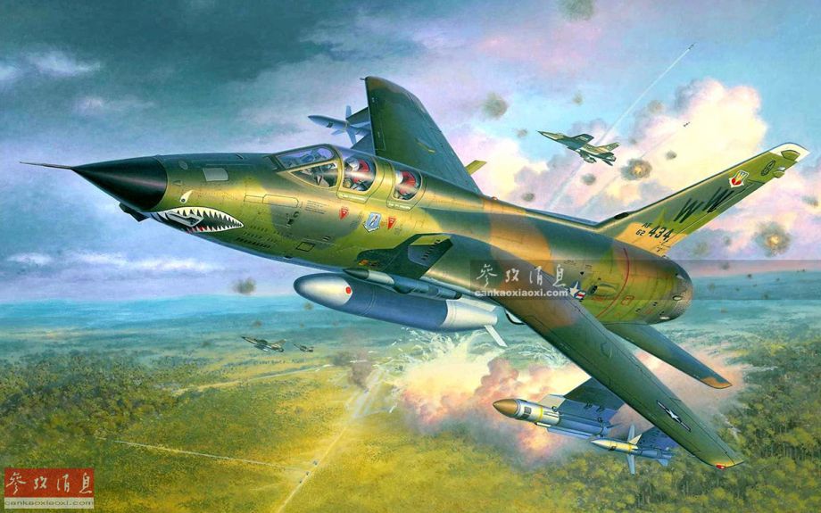 图为艺术家绘制的F-105G战机执行“野鼬鼠”任务的场面。