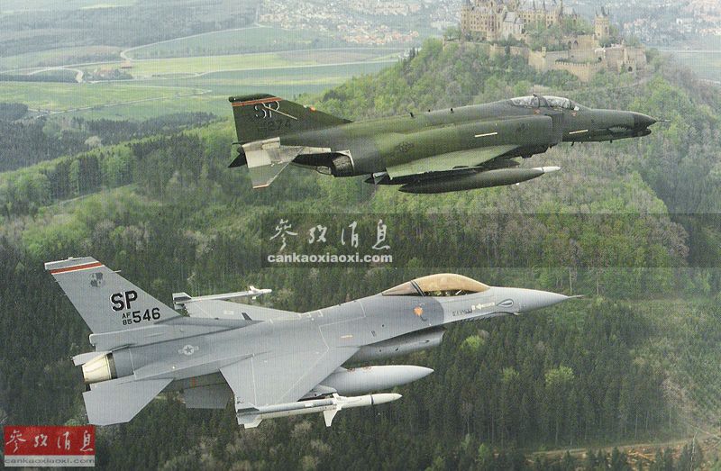 图为美空军两代“野鼬鼠”战机(F-4G与F-16CJ)编队飞行。