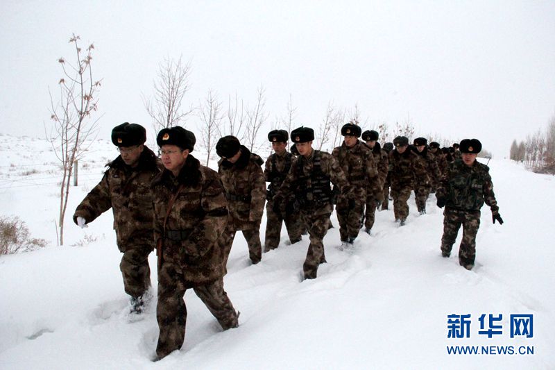 6日,新疆阿勒泰边防支队老吉木乃边防派出所参加党政军警民兵“六位一体”的联合巡逻踏查工作,进一步加强安全防范工作力度,确保边境地区安全。