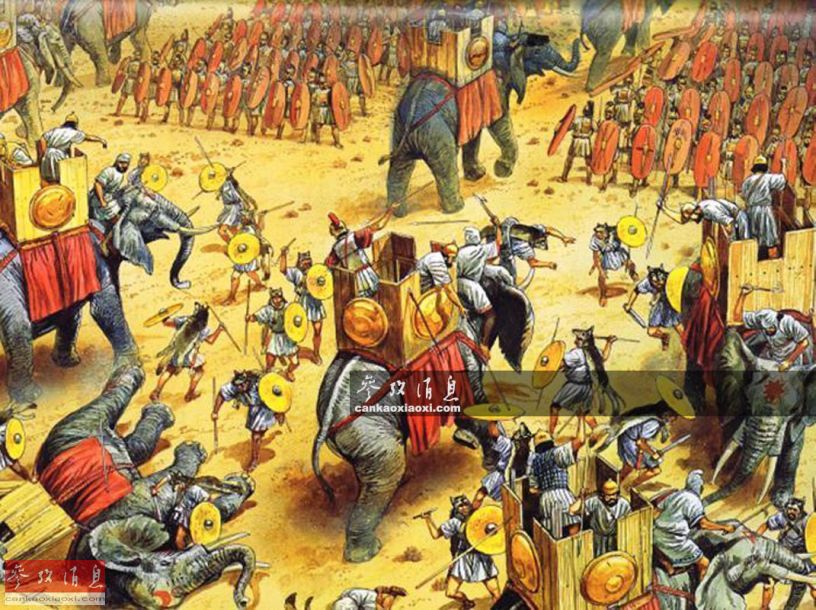 战例二:公元前202年,迦太基名将汉尼拔与西庇阿指挥的罗马军队爆发扎马战役。面对曾让己方吃过大亏的迦太基象阵,西庇阿没有采取罗马军团通用的的棋盘方阵,而让各战斗单位间留出足够敌方战象穿过的通道。虽然汉尼拔以战象冲击先发制人,但一些战象从通道冲过了罗马战线,还有一些沿途遭到罗马投掷手攻击。