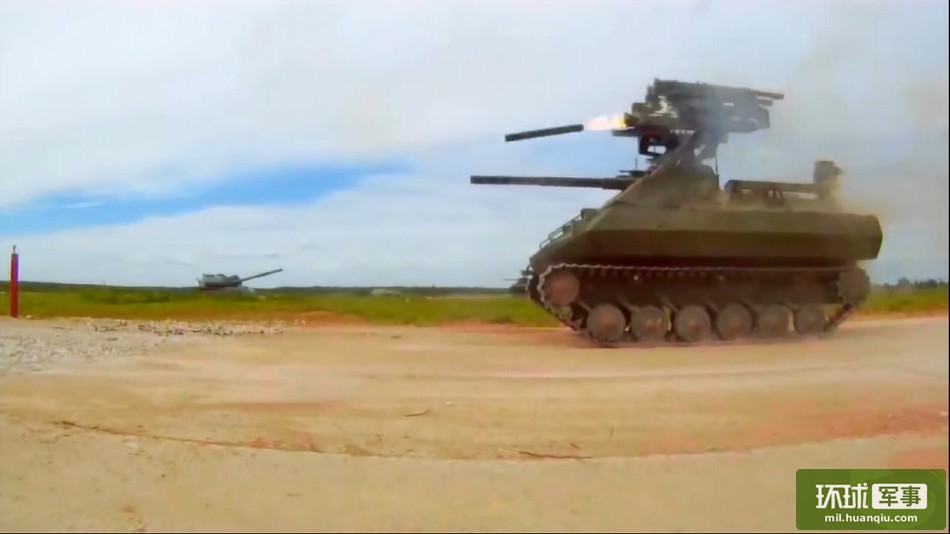 俄罗斯“天王星9”多功能机器战车具有侦察与火力打击,主要用于情报与反恐支援。武器包括30毫米2A72自动机关炮、7.62毫米机枪、'攻击'式反坦克导弹。俄罗斯国防出口公司新闻处30日表示,将从明年开始向国际市场推广此款多功能机器战车。近日,一段该型武器的测试画面在网络上曝光,不过在一段发射画面中,弹体并未飞出而是直接掉落在地上,也有可能只是在进行无弹药的导弹推出测试。