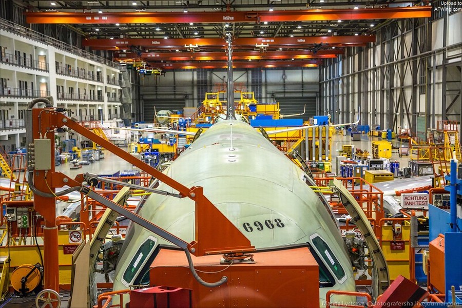 装完发动机后就要被送入喷漆车间了。到现在为止,机身上只有垂尾有涂装,机身穿着黄绿色底漆。