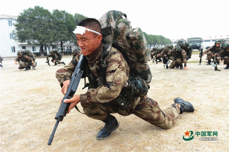 就在前天,翻越意志障碍时,用力过猛,我头部被磕破,在军医治疗时,头上剧烈的疼痛和训练的艰辛一起涌上心头,眼眶不禁湿润起来。“忠于祖国,超越自我,挑战极限,猎人必胜!”队友们撕心裂肺地喊起“猎人”口号,看着他们坚定的背影,我捡起枪支、穿起行装,跟了上去……
