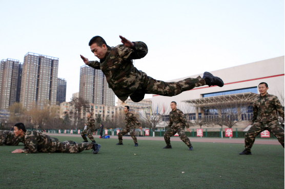 进行军事体能训练。张浩 摄