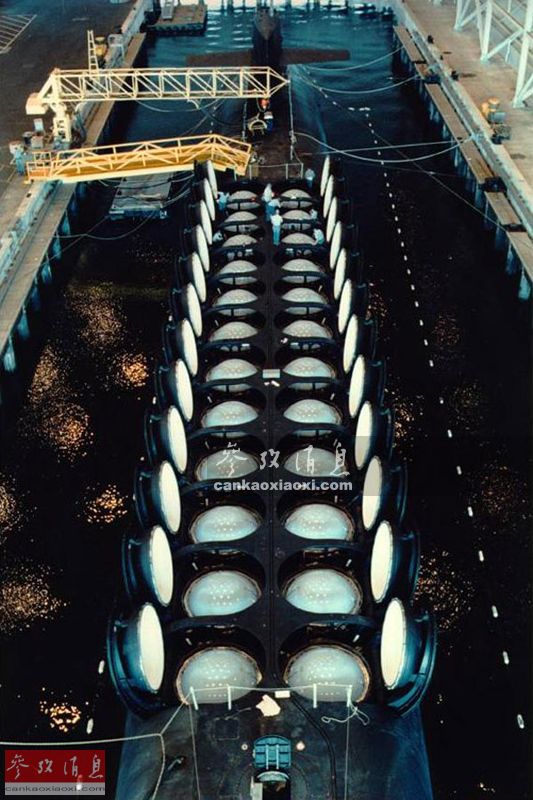 美军俄亥俄级战略导弹核潜艇展示24座“三叉戟”潜射弹道导弹发射筒。