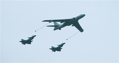 战机空中加油。吕跟章 摄