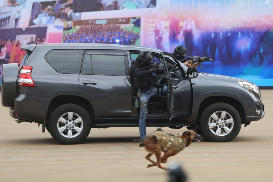 “飞虎队”及警犬到场跟“匪徒”发生枪战