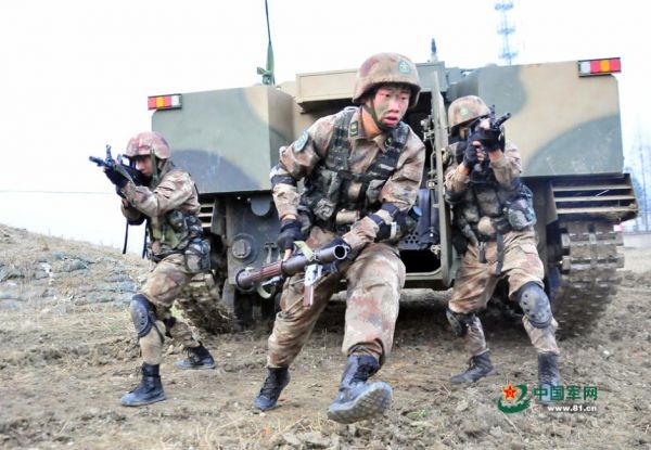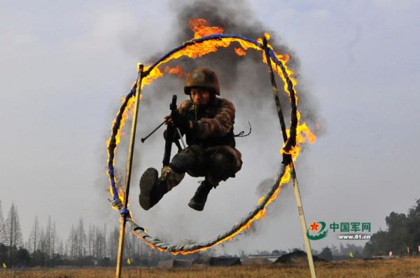 解放军04A步战车演练 战士钻火圈跳火沟(高清图)