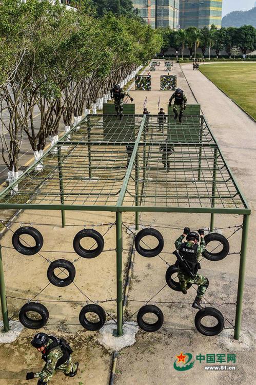 特战队员正在穿越各种障碍物。