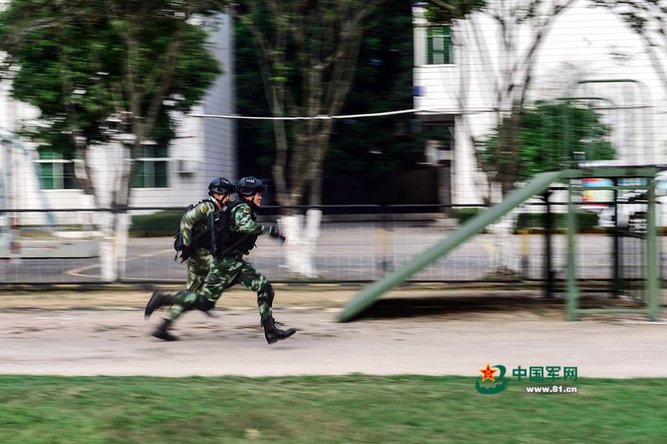 特战队员正在穿越400米障碍物。