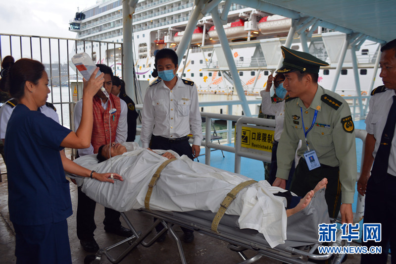 14日,某邮轮停靠海南三亚,一名中国籍旅客在等待下轮过程中突发心肌梗塞,海南边防总队三亚边检站开启“绿色通道”为其提供快速通关服务。