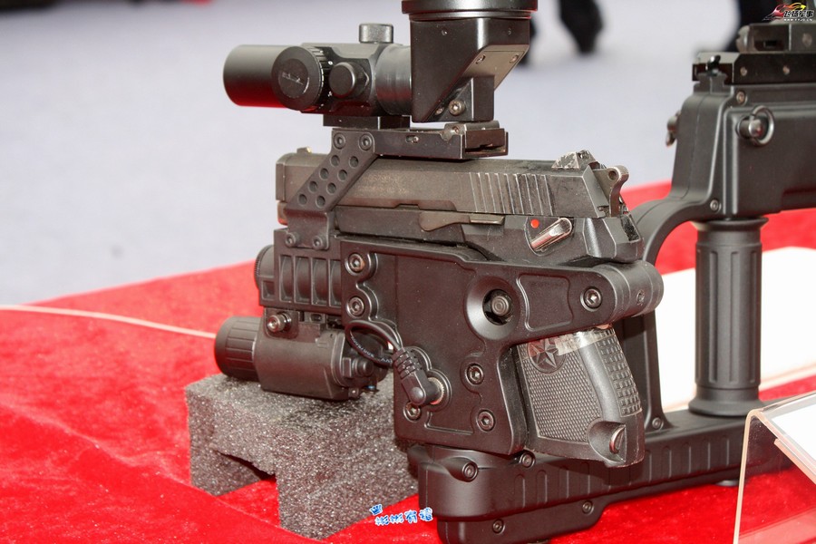 近日,一组国产新型拐弯枪的照片在网络上曝光。据悉,与普通拐弯枪不同的是,这款国产拐弯枪采用的是自由变线射击观瞄系统,可以将手枪安装在系统平台上,通过扭转组件实现自由转动以改变手枪的射击瞄准线。