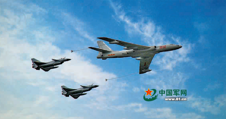 空军“王牌”部队轰油-6同时给两架歼-10授油