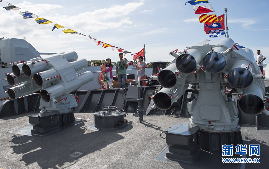 1月17日,在东帝汶首都帝力,当地华人在中国海军军舰上参观。