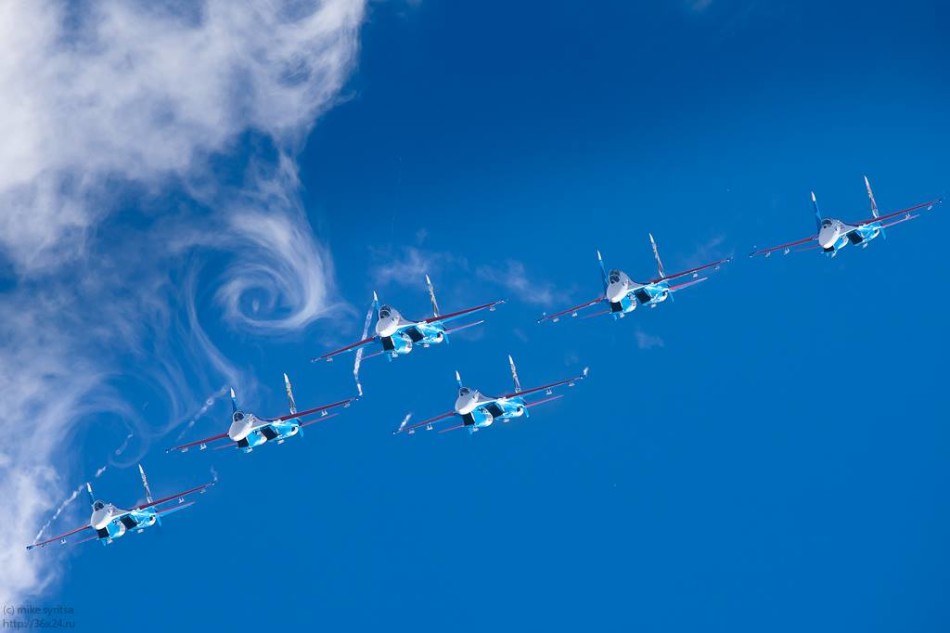 俄罗斯联合飞机制造集团放出一组精选的2015年度战机美图。包含苏-34、苏-30SM、苏-27、米格-29等。虽然重型战斗机异常威猛,但是在这组照片里面居然还拍出了唯美的感觉。