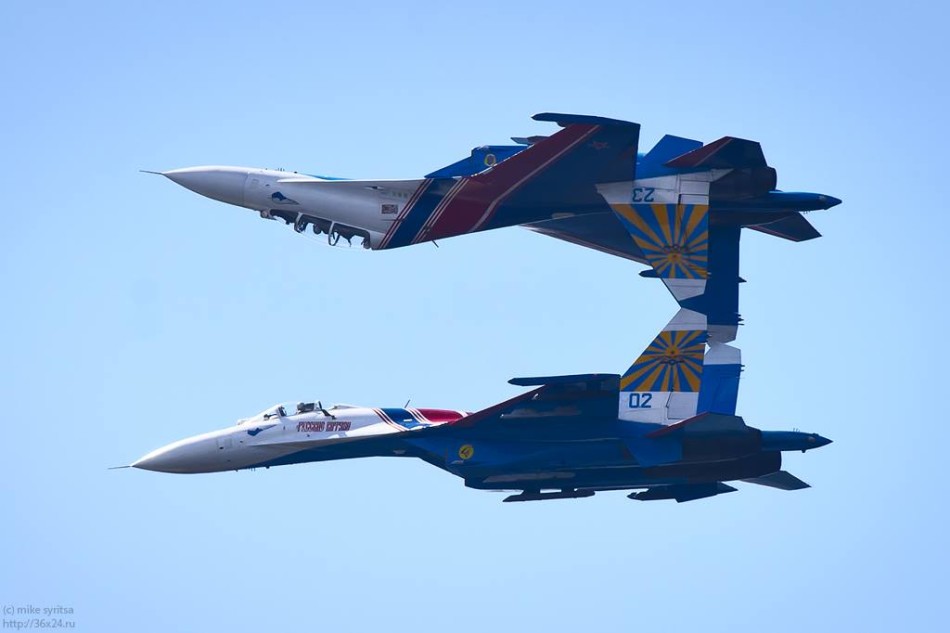 俄罗斯联合飞机制造集团放出一组精选的2015年度战机美图。包含苏-34、苏-30SM、苏-27、米格-29等。虽然重型战斗机异常威猛,但是在这组照片里面居然还拍出了唯美的感觉。