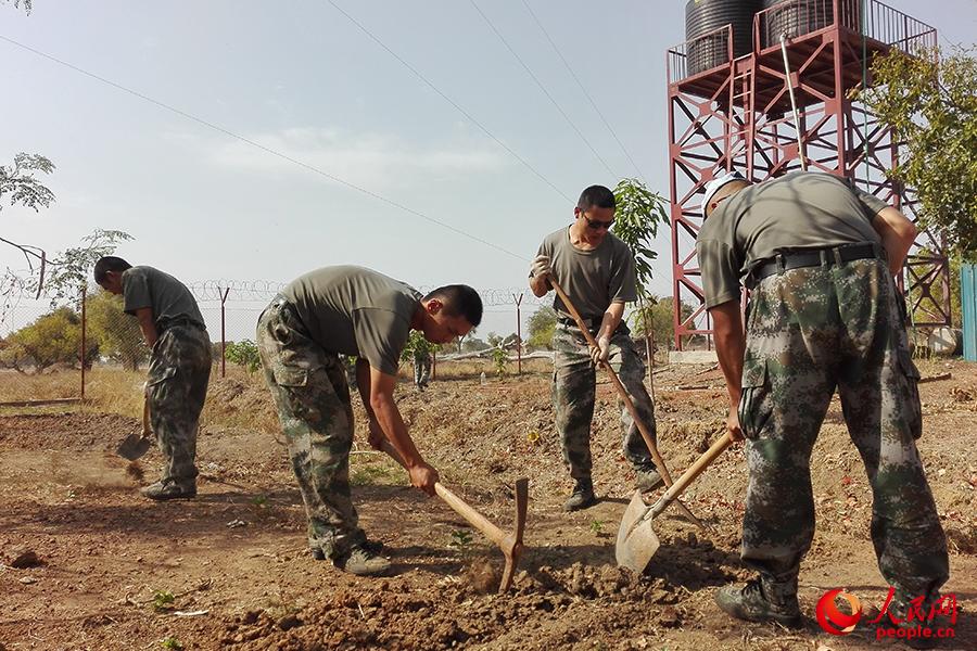 图拉雷地理位置特殊,分队半个多月才有一次食物补给。官兵利用施工间隙,在角落开垦荒地、种植蔬菜。王林龙 摄