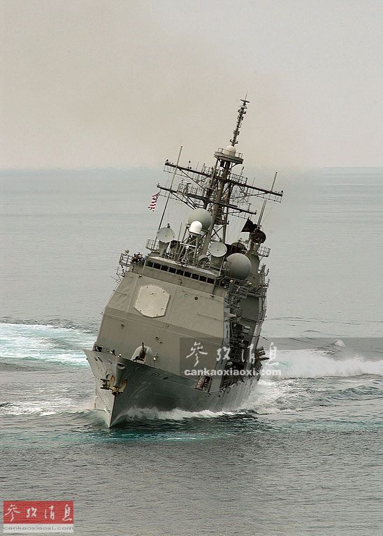 美海军提康德罗加级”维拉湾“号(CG-72)导弹巡洋舰进行高速转向测试。